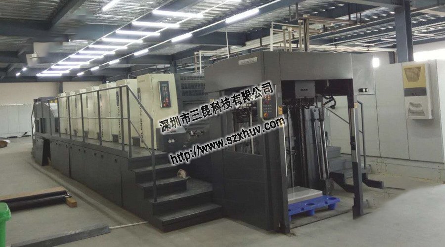 ▲在這種情況下,在河南南陽某客戶的曼羅蘭700 7 + 1膠印機上安裝了LED UV固化系統。 客戶使用了杭華161普通